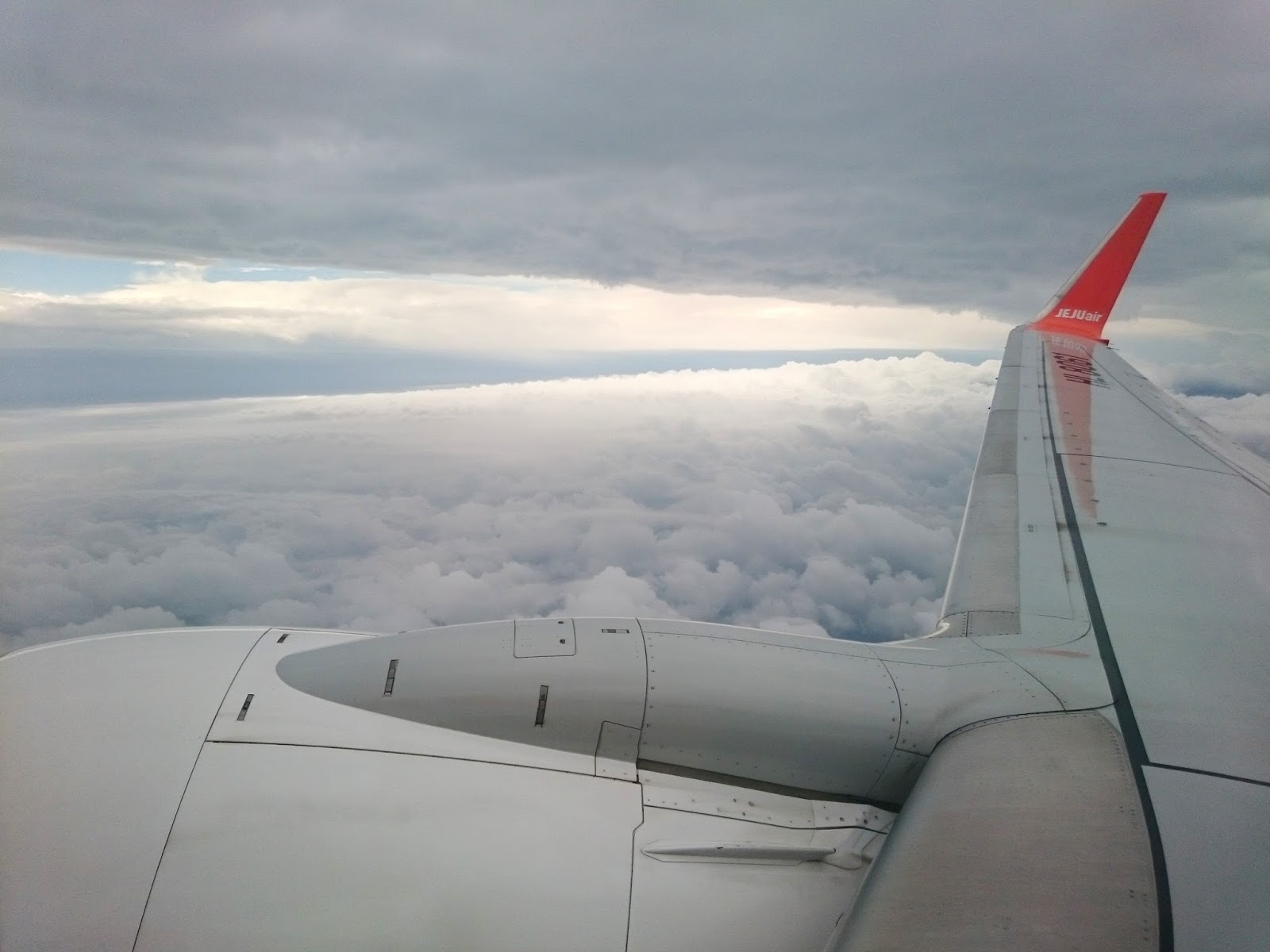 如果是搭长途飞机的话,我偏好选择靠走道的座位,主要是方便走动。可是如果只是一个小时多的短程飞行,我多数会选择靠窗的座位。所以这次济州飞釜山的这一段我就有机会看到窗外情景。